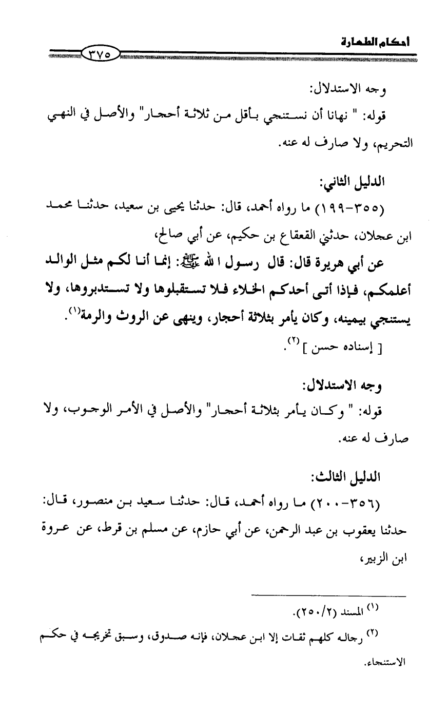 (¬٢) رجاله كلهم ثقات إلا ابن عجلان، فإنه صدوق، وسبق تخريجه في حكم الاستنجاء.