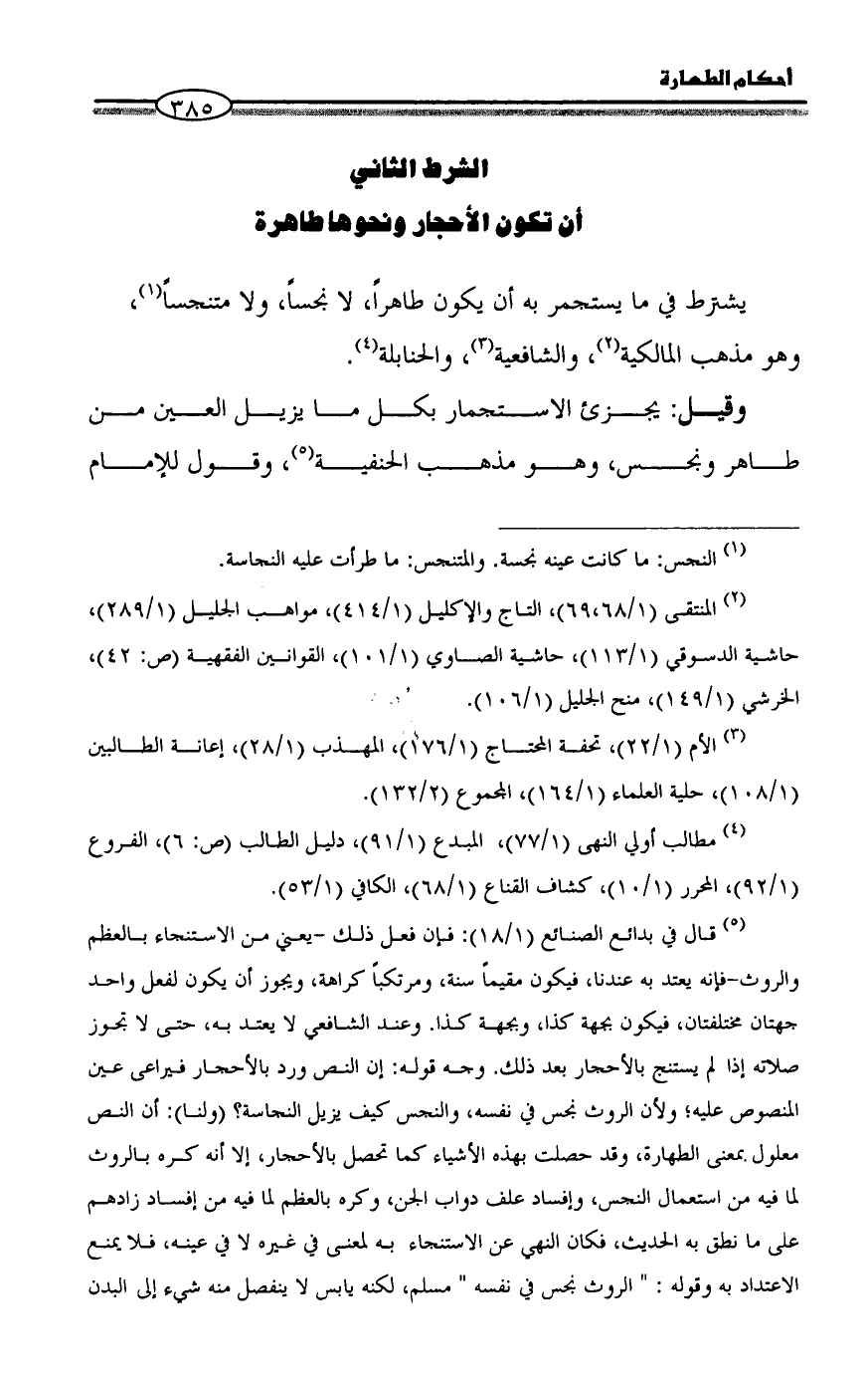 أن تكون الأحجار ونحوها طاهرة
