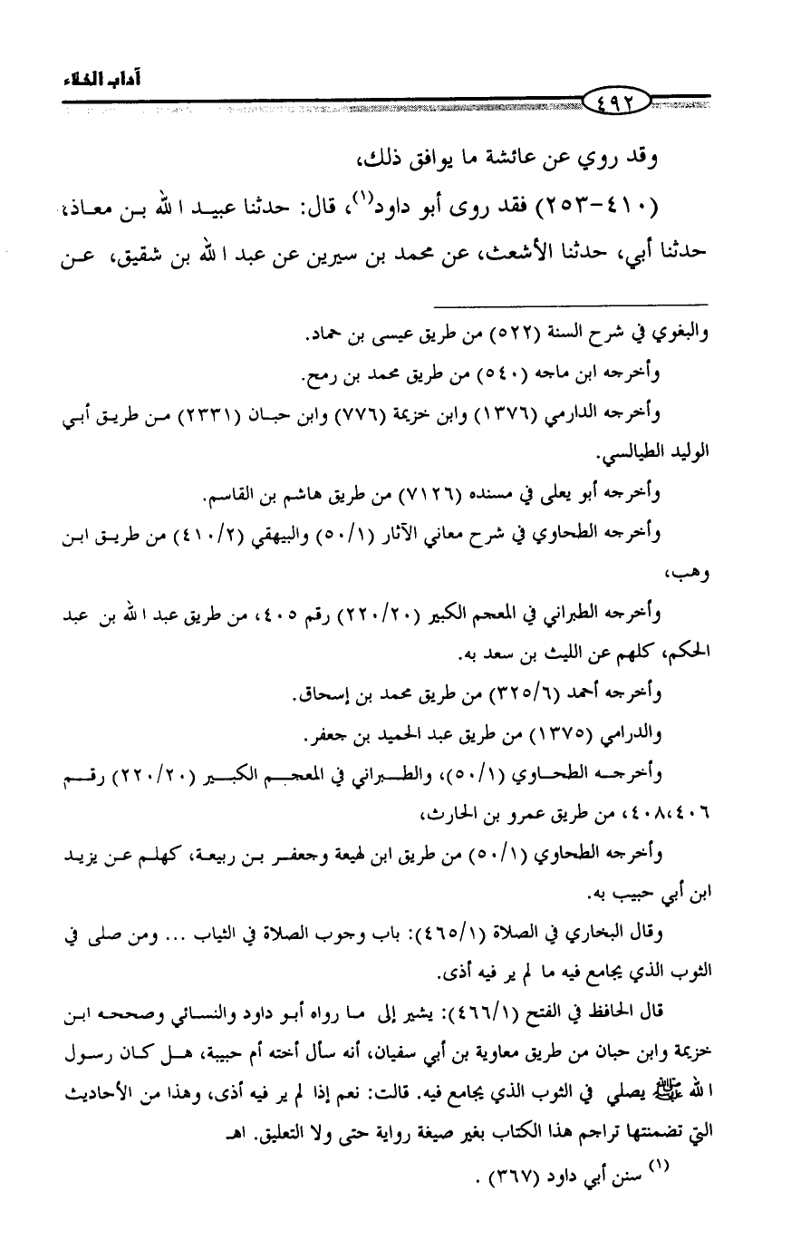 (٤٠٨ - ٢٥٢) فقد روى أبو داود (¬١)، قال: حدثنا عبيد الله بن معاذ، حدثنا أبي، حدثنا الأشعث، عن محمد بن سيرين عن عبد الله بن شقيق، عن