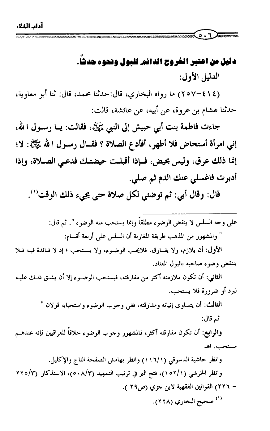 دليل من اعتبره الخروج الدائم للبول ونحوه حدثاً.