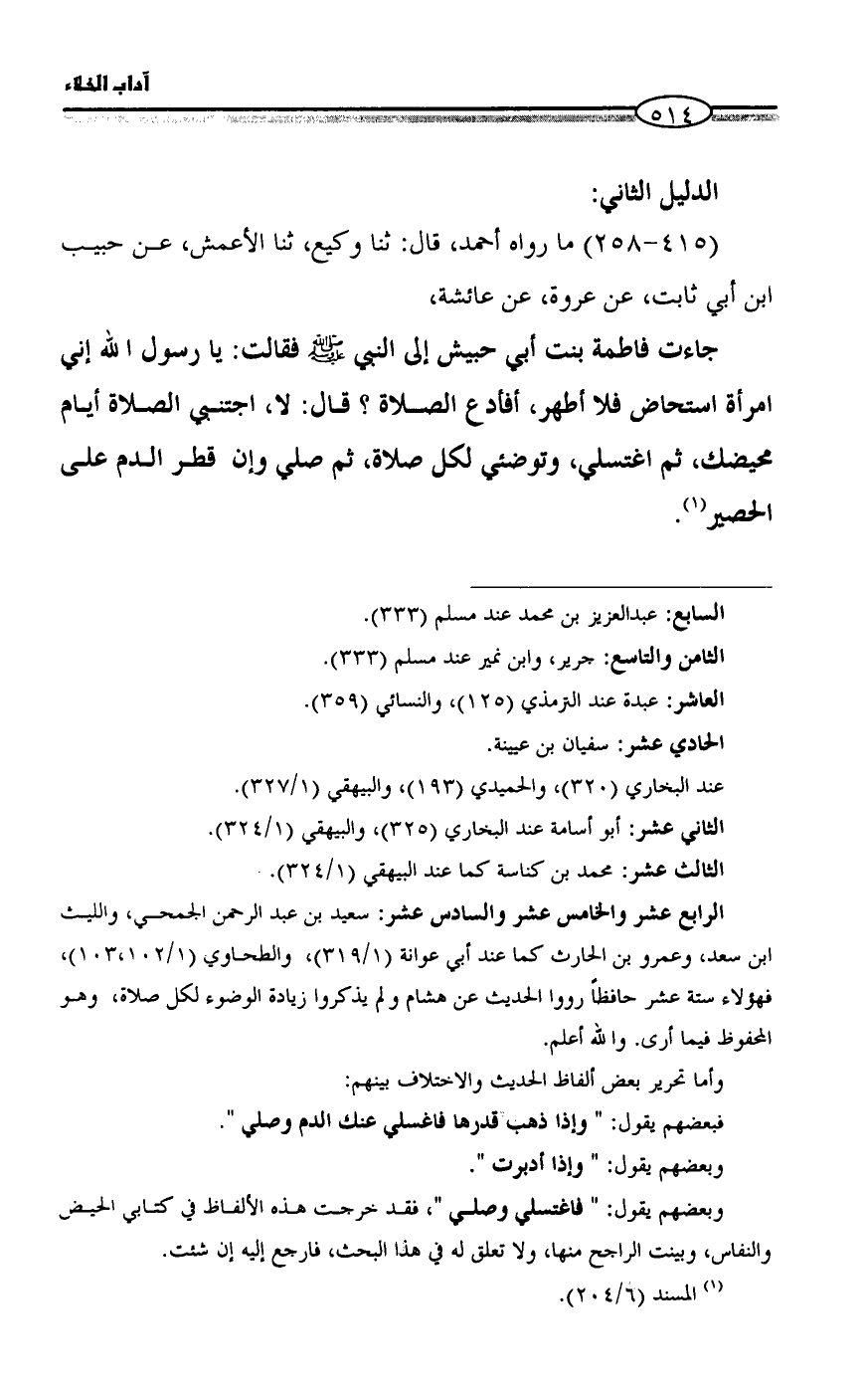 وبعضهم يقول: " فاغتسلي وصلي "، فقد خرجت هذه الألفاظ في كتابي الحيض والنفاس، وبينت الراجح منها، ولا تعلق له في هذا البحث، فارجع إليه إن شئت.