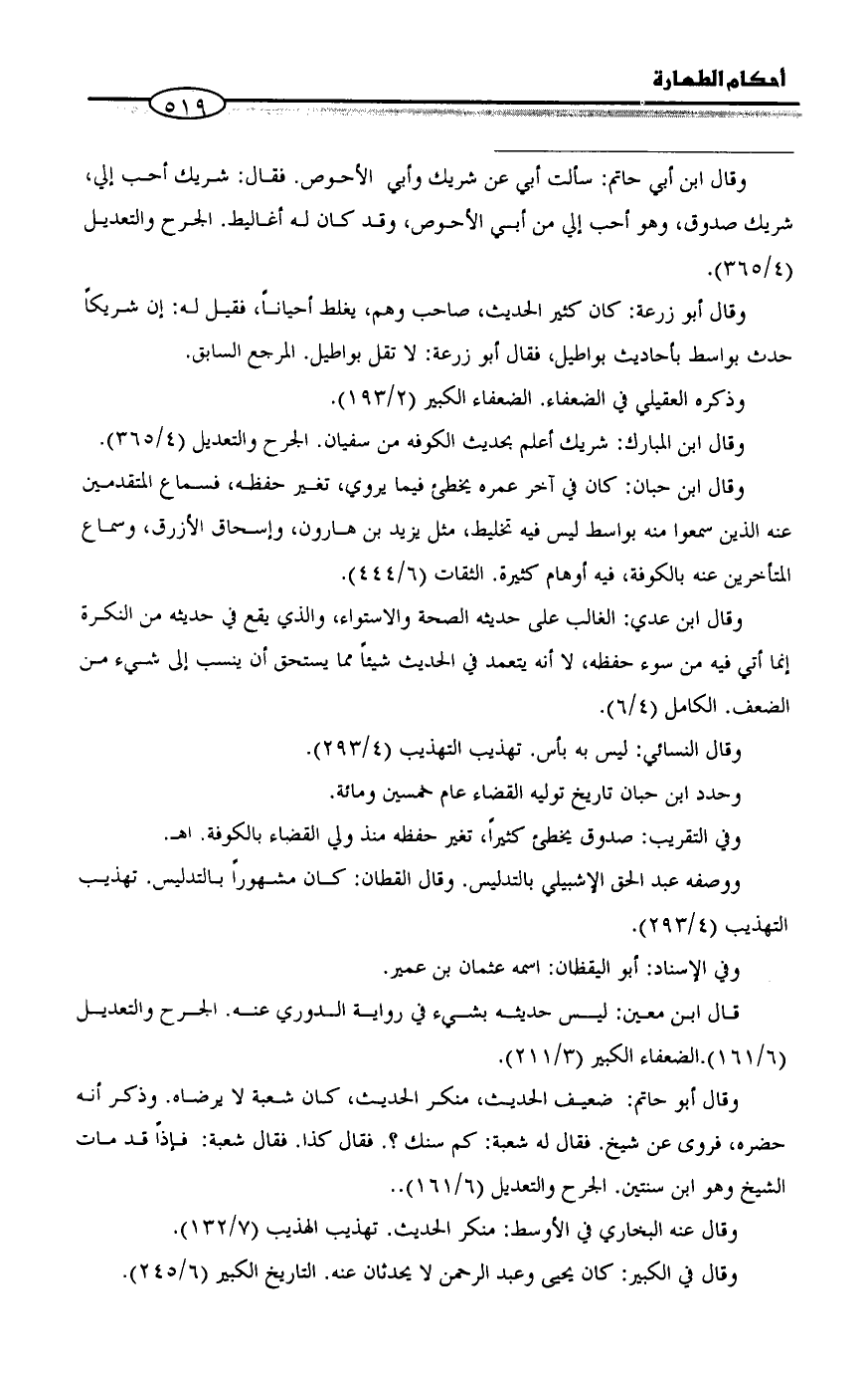 وقال ابن المبارك: شريك أعلم بحديث الكوفه من سفيان. الجرح والتعديل (٤/ ٣٦٥).
