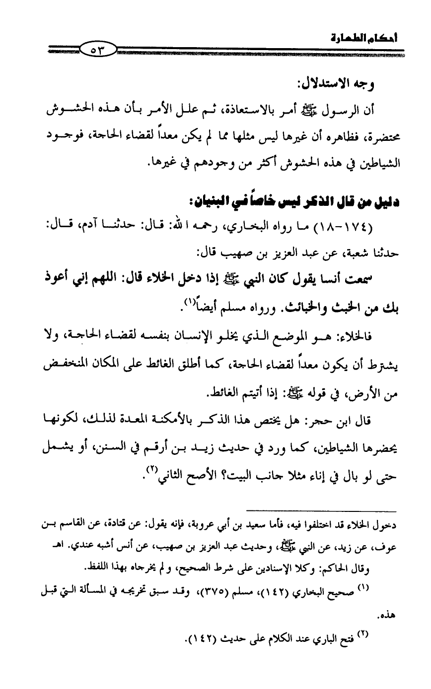 سمعت أنسا يقول كان النبي صلى الله عليه وسلم إذا دخل الخلاء قال اللهم إني أعوذ بك من الخبث والخبائث. ورواه مسلم أيضاً (¬١).