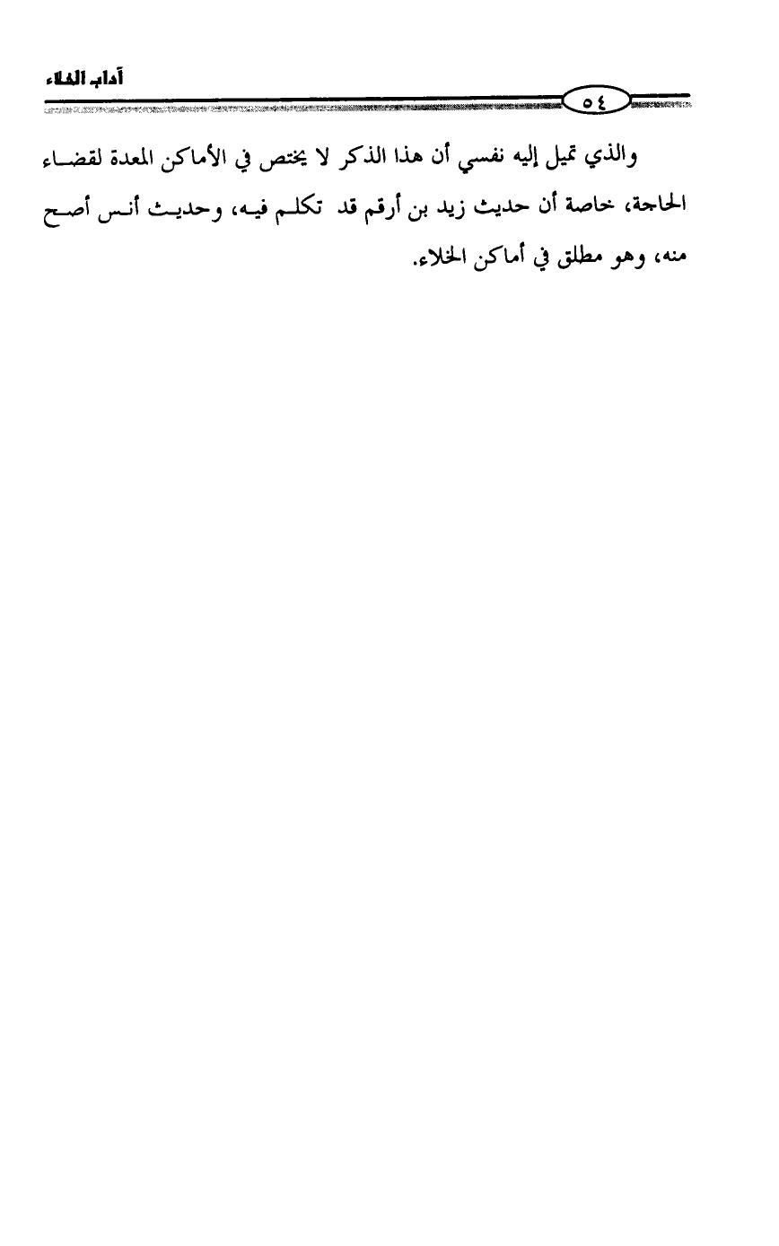 والذي تميل إليه نفسي أن هذا الذكر لا يختص في الأماكن المعدة لقضاء الحاجة، خاصة أن حديث زيد بن أرقم قد تكلم فيه، وحديث أنس أصح منه، وهو مطلق في أماكن الخلاء.