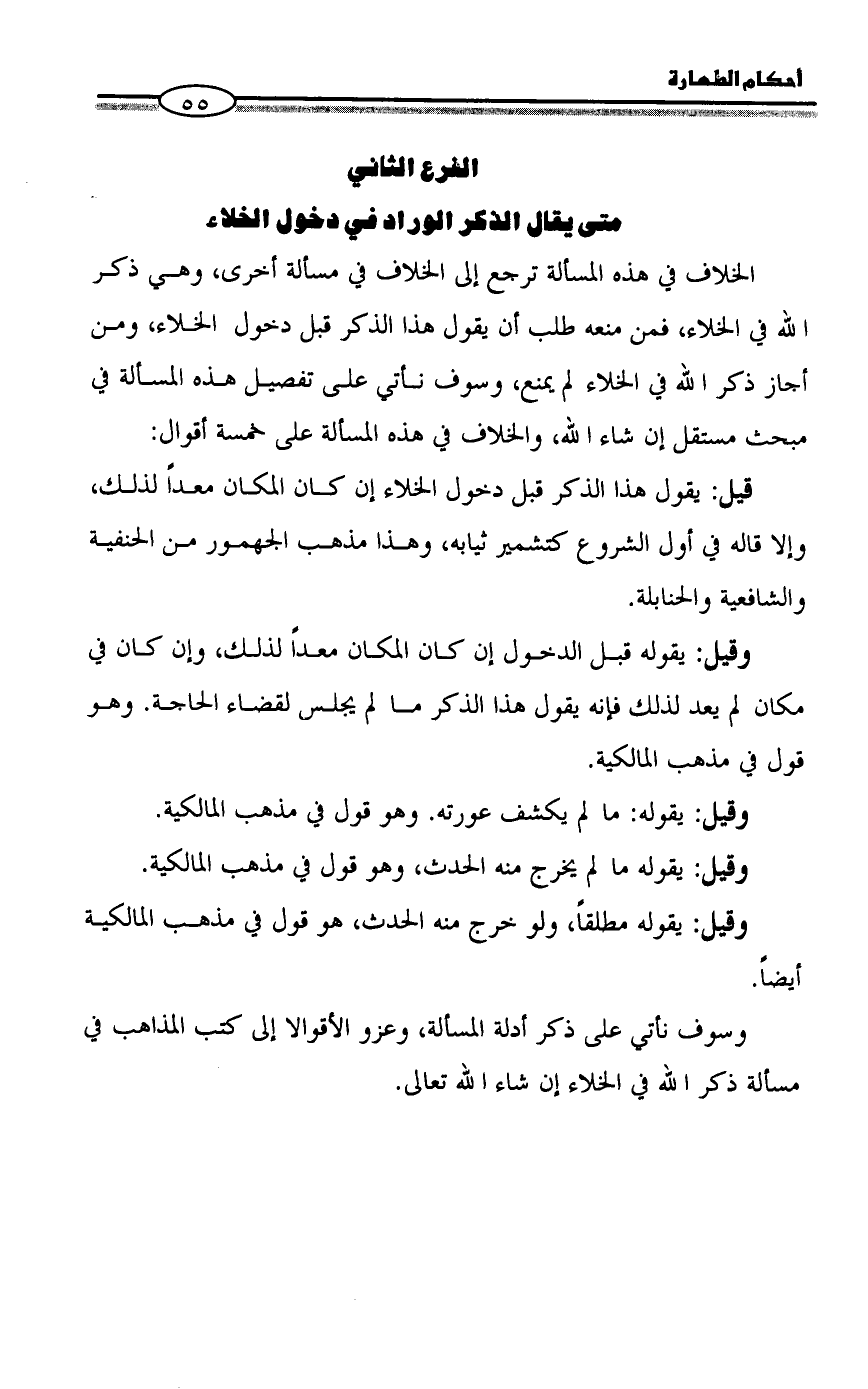 الفرع الثاني متى يقال الذكر الوراد في دخول الخلاء