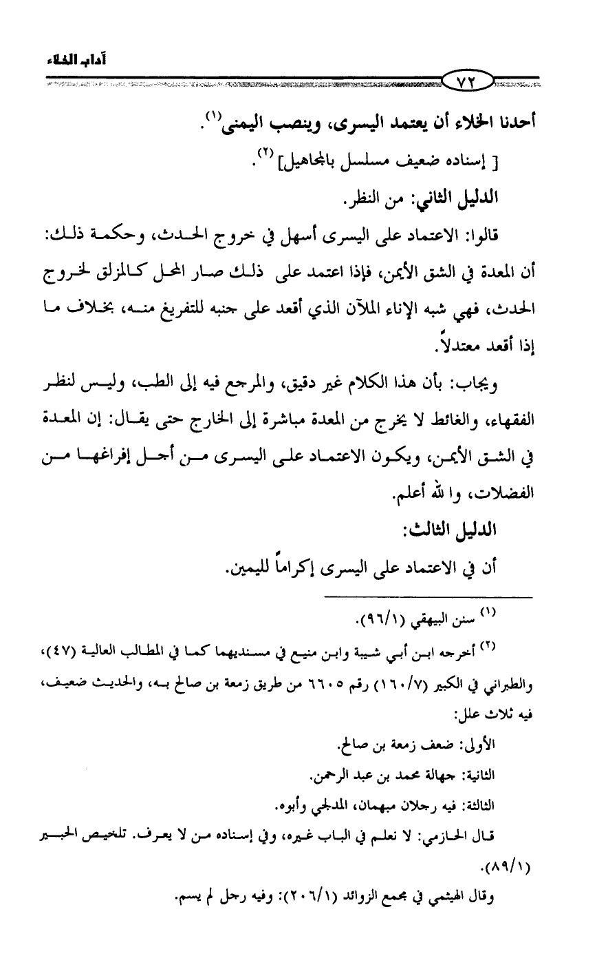 أن في الاعتماد على اليسرى إكراماً لليمين.