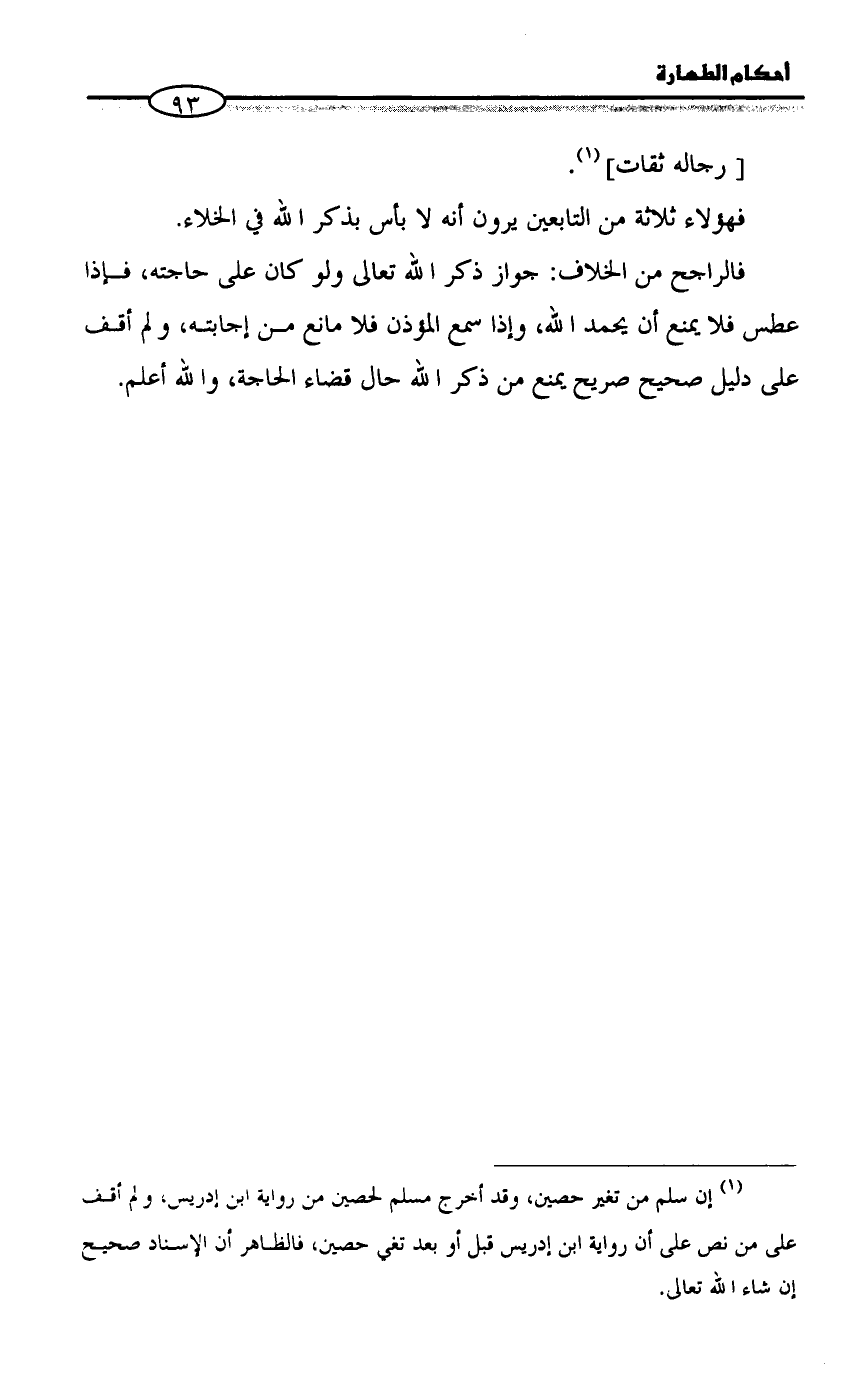 فهؤلاء ثلاثة من التابعين يرون أنه لا بأس بذكر الله في الخلاء.