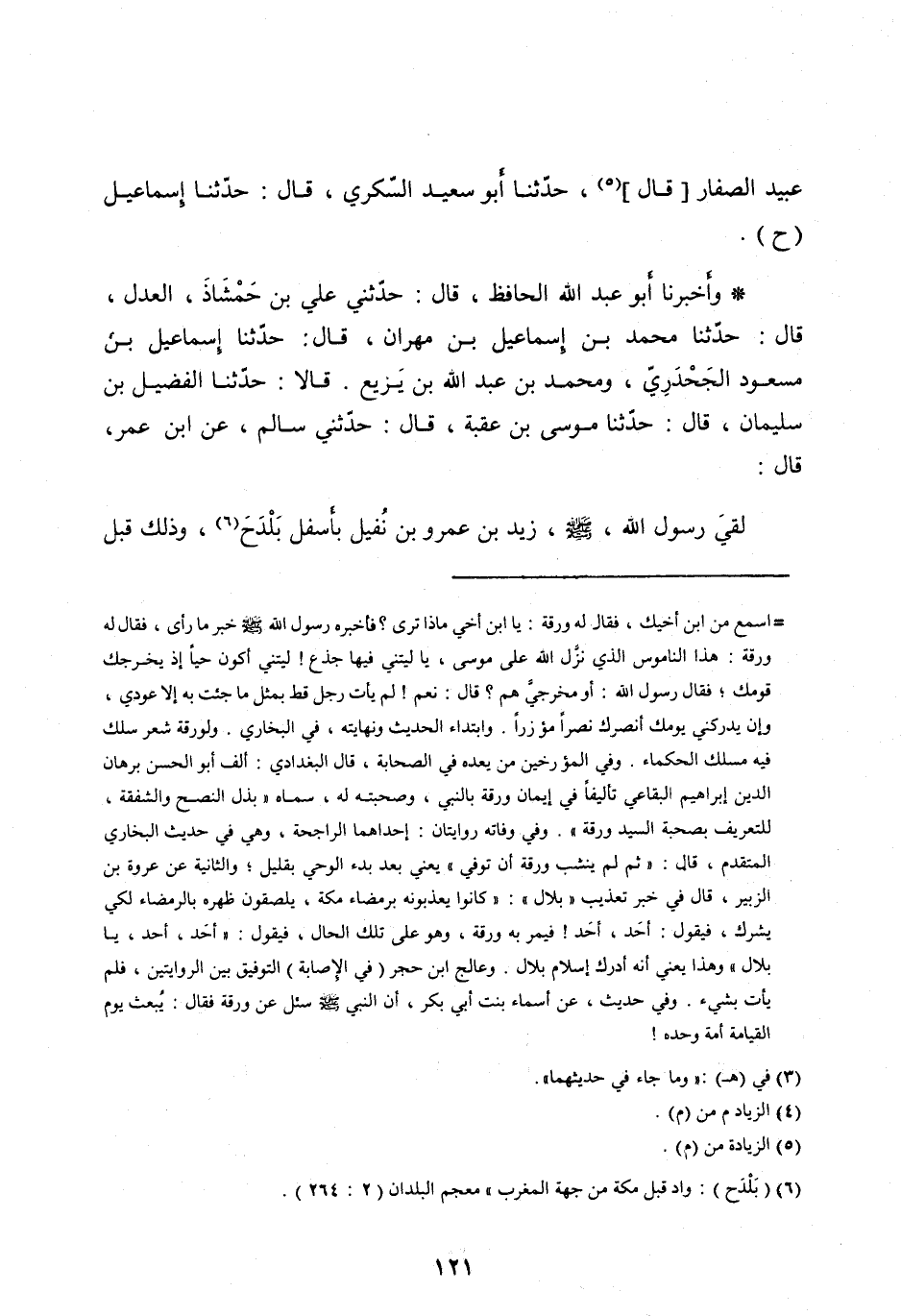 لَقِيَ رَسُولُ اللهِ، صَلَّى اللهُ عَلَيْهِ وآله وَسَلَّمَ، زَيْدَ بْنَ عَمْرِو بْنِ نُفَيْلٍ بِأَسْفَلَ بَلْدَحٍ [ (6) ] ، وذلك قبل