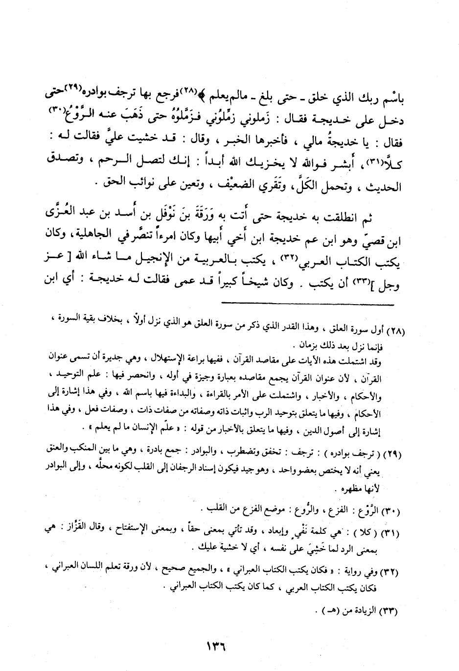 [ (32) ] وفي رواية: «فكان يكتب الكتاب العبراني» ، والجميع صحيح، لأن ورقة تعلم اللسان العبراني، فكان يكتب الكتاب العربي، كما كان يكتب الكتاب العبراني.