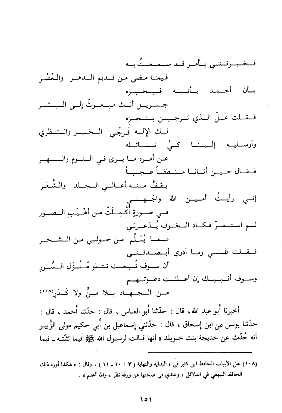 [ (108) ] نقل الأبيات الحافظ ابن كثير في «البداية والنهاية (3: 10- 11) ، وقال: «هكذا أورد ذلك الحافظ البيهقي في الدلائل، وعندي في صحتها عن ورقة نظر، والله أعلم» .