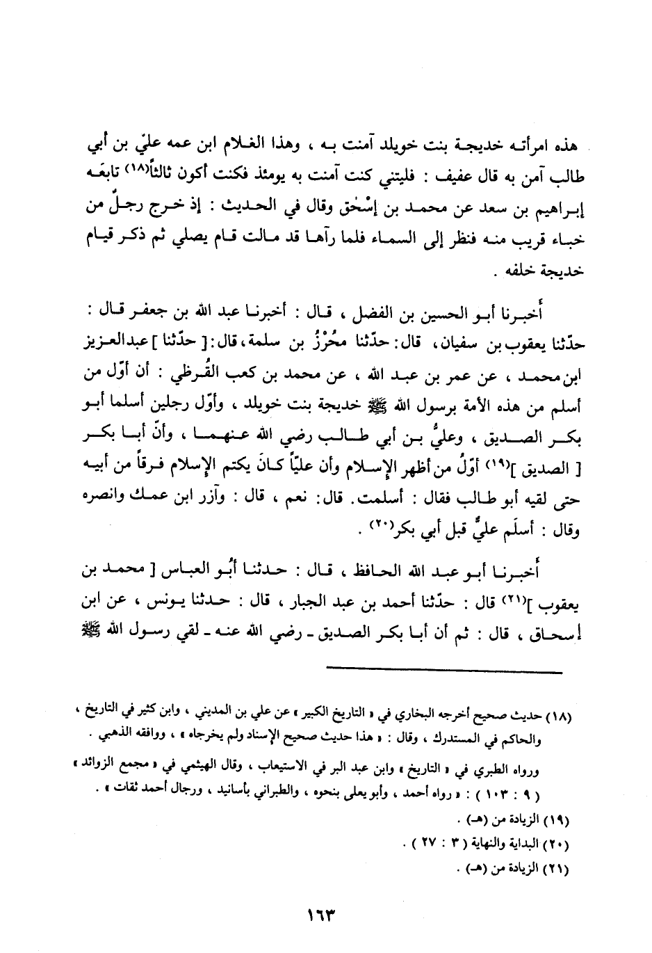 [ (18) ] حديث صحيح أخرجه البخاري في «التاريخ الكبير» عَنْ عَلِيِّ بْنِ الْمَدِينِيِّ، وابن كثير في التاريخ، والحاكم في المستدرك، وقال: «هذا حديث صحيح الإسناد ولم يخرجاه» ، ووافقه الذهبي.