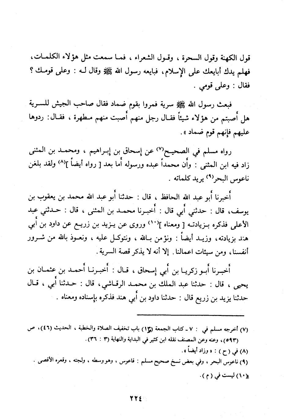 قَوْلَ الْكَهَنَةِ وَقَوْلَ السَّحَرَةِ، وَقَوْلَ الشُّعَرَاءِ، فَمَا سَمِعْتُ مِثْلَ هَؤُلَاءِ الْكَلِمَاتَ، فَهَلُمَّ يَدَكَ أُبَايِعْكَ عَلَى الْإِسْلَامِ، فَبَايَعَهُ رَسُولُ اللهِ صَلَّى الله عليه وآله وَسَلَّمَ وَقَالَ لَهُ: وَعَلَى قَوْمِكَ؟