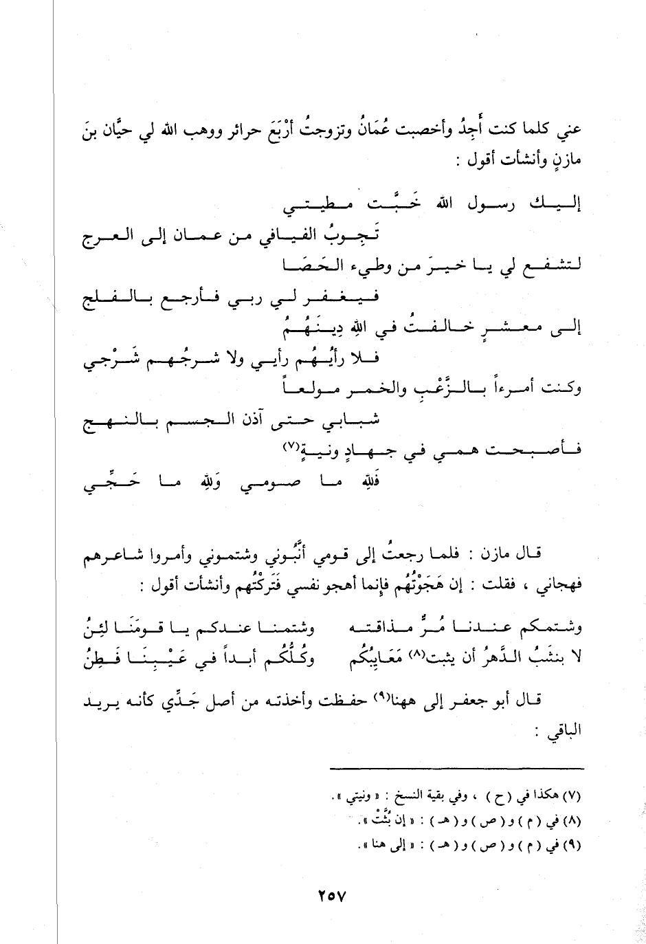 إِلَيْكَ رَسُولَ اللهِ خَبَّتْ مَطِيَّتِي ... تَجُوبُ الْفَيَافِي مِنْ عُمَانَ إِلَى الْعَرْجِ