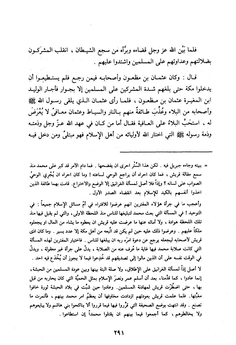 لا أصل إذا لمسألة الغرانيق على الإطلاق، ولا صلة البتة بينها وبين عودة المسلمين من الحبشة، إنما عادوا، كما قدّمنا، بعد أن أسلم عمر ونصر الإسلام بمثل الحميّة التي كان يحاربه من قبل بها، حتى اضطرّت قريش لمهادنة المسلمين. وعادوا حين شبّت في بلاد الحبشة ثورة خافوا مغبّتها. فلما علمت قريش بعودتهم ازدادت مخاوفها أن يعظم امر محمد بينهم، فأتمرت ما تصنع. وقد انتهت بوضع الصحيفة التي قرّروا فيها فيما قرروا ألا يناكحوا بني هاشم ولا يبايعوهم ولا يخالطوهم، كما أجمعوا فيما بينهم ان يقتلوا محمدا إن استطاعوا.