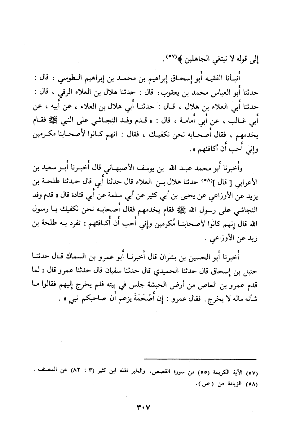 [ (57) ] الآية الكريمة (55) من سورة القصص، والخبر نقله ابن كثير (3: 82) عن المصنف.