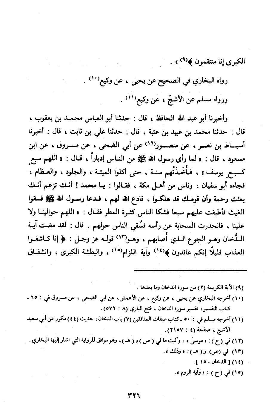 [ (10) ] أخرجه البخاري عَنْ يَحْيَى، عَنْ وَكِيعٌ، عَنِ الْأَعْمَشِ، عَنْ أَبِي الضُّحَى، عَنْ مَسْرُوقٍ في: 65- كتاب التفسير، تفسير سورة الدخان، فتح الباري (8: 572) .