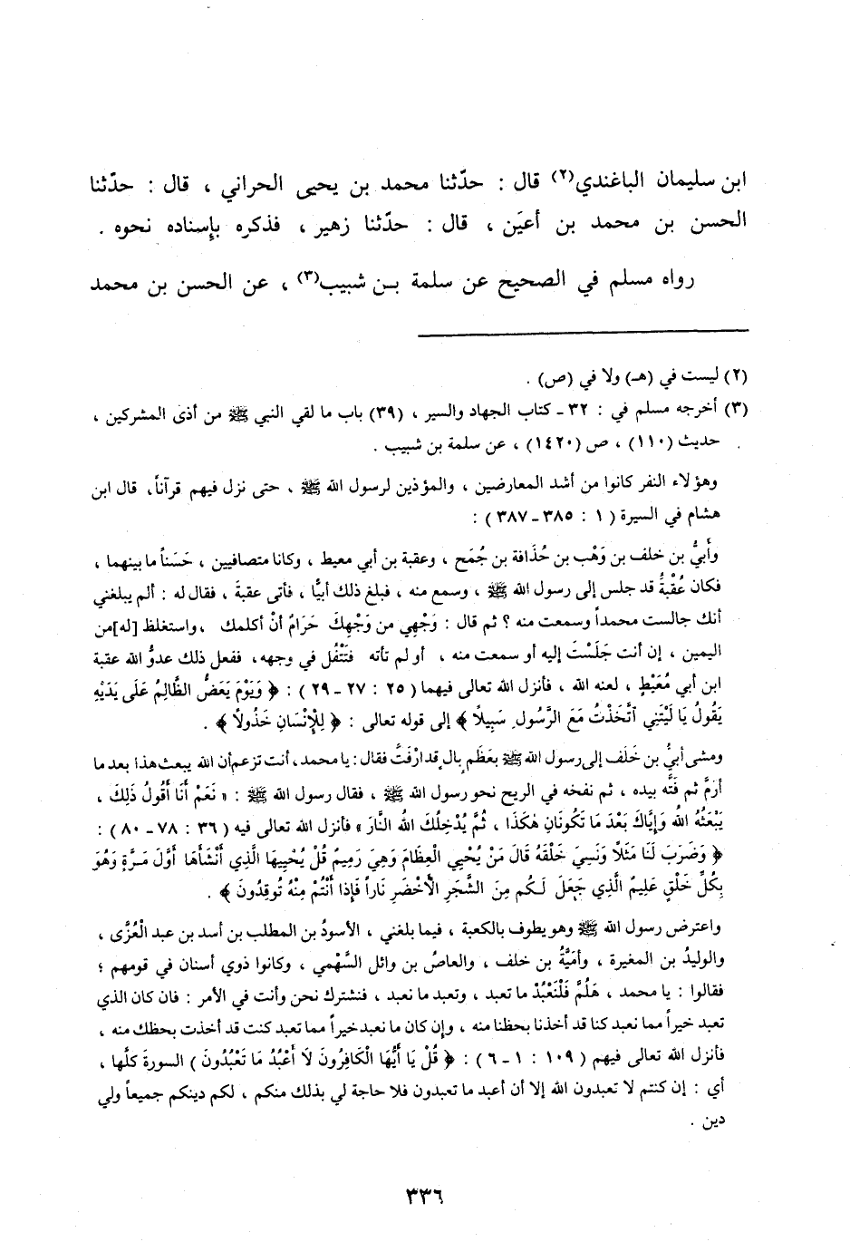 [ (3) ] أخرجه مسلم في: 32- كتاب الجهاد والسير، (39) باب ما لقي النبي صلى الله عليه وآله وسلّم من أذى المشركين، حديث (110) ، ص (1420) ، عَنْ سَلَمَةَ بْنِ شَبِيبٍ.