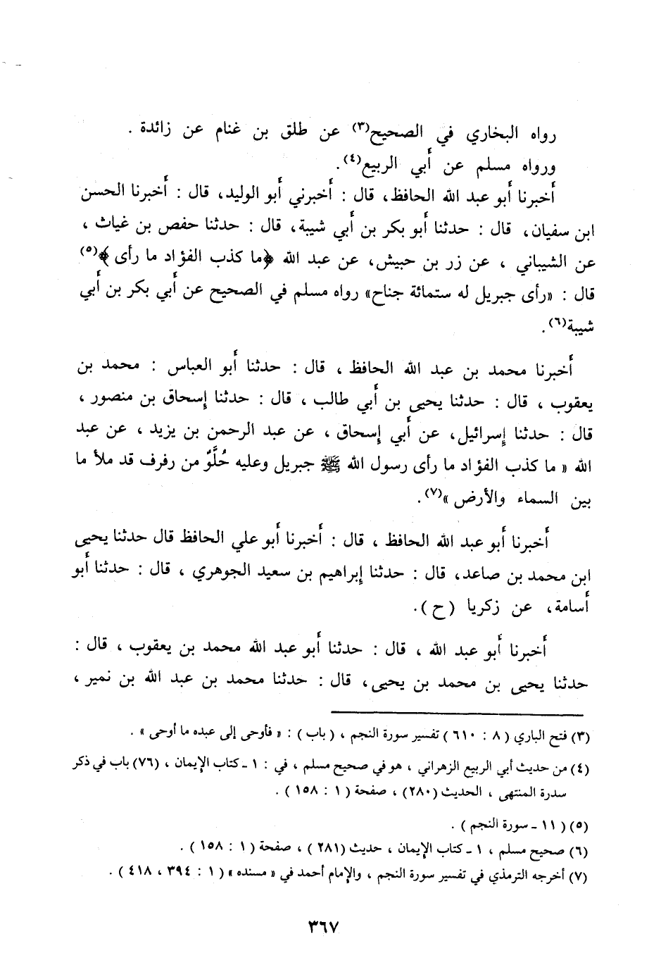 [ (7) ] أخرجه الترمذي في تفسير سورة النجم، والإمام أحمد في «مسنده» (1: 394، 418) .