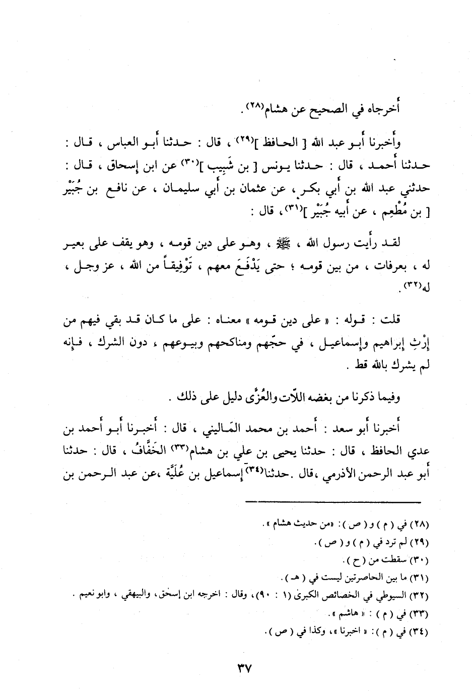 [ (32) ] السيوطي في الخصائص الكبرى (1: 90) ، وقال: أخرجه ابن إسحق، والبيهقي، وابو نعيم.