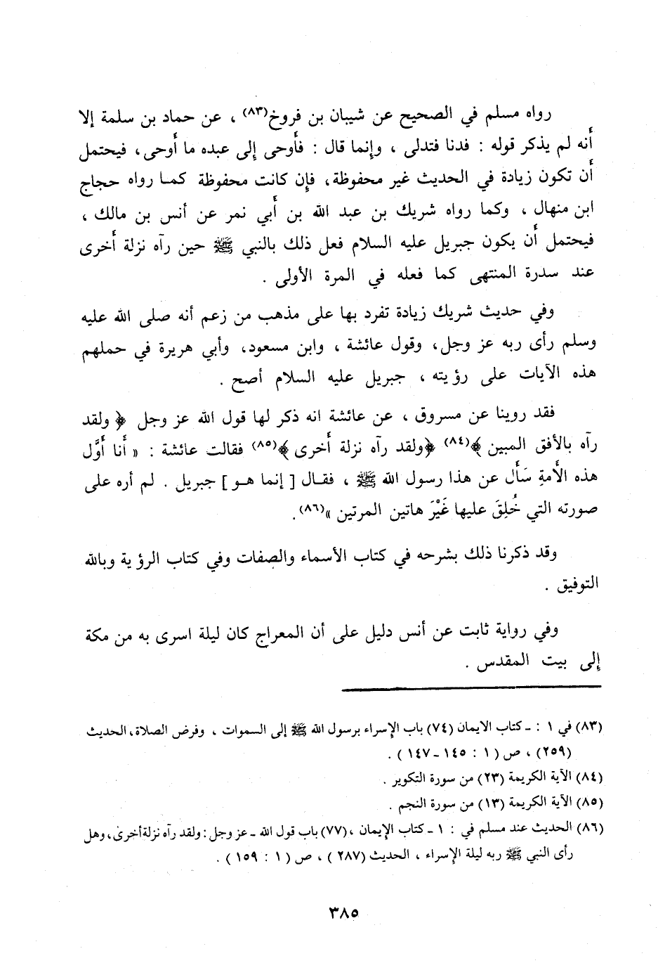 [ (86) ] الحديث عند مسلم في: 1- كتاب الإيمان، (77) بَابُ قَوْلِ اللهِ- عَزَّ وَجَلَّ: وَلَقَدْ رَآهُ نَزْلَةً أخرى، وهل رَأَى النَّبِيَّ صَلَّى اللهُ عليه وآله وسلّم ربه ليلة الإسراء، الحديث (287) ، ص (1: 159) .