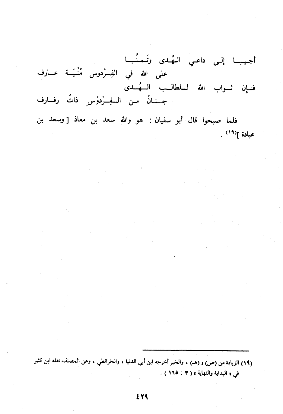 فَإِنَّ ثَوَابَ اللهِ لِلطَّالِبِ الْهُدَى ... جِنَانٌ مِنَ الْفِرْدَوْسِ ذَاتُ رَفَارِفِ