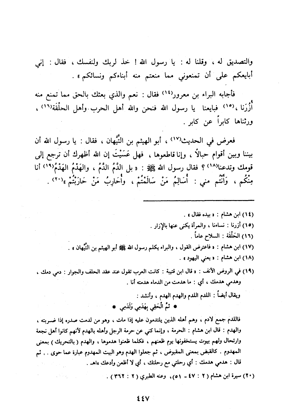 [ (17) ] ابن هشام: «فاعترض القول، والبراء يكلم رسول الله صلى الله عليه وآله وسلّم أَبُو الْهَيْثَمِ بْنُ التَّيِّهَانِ» .