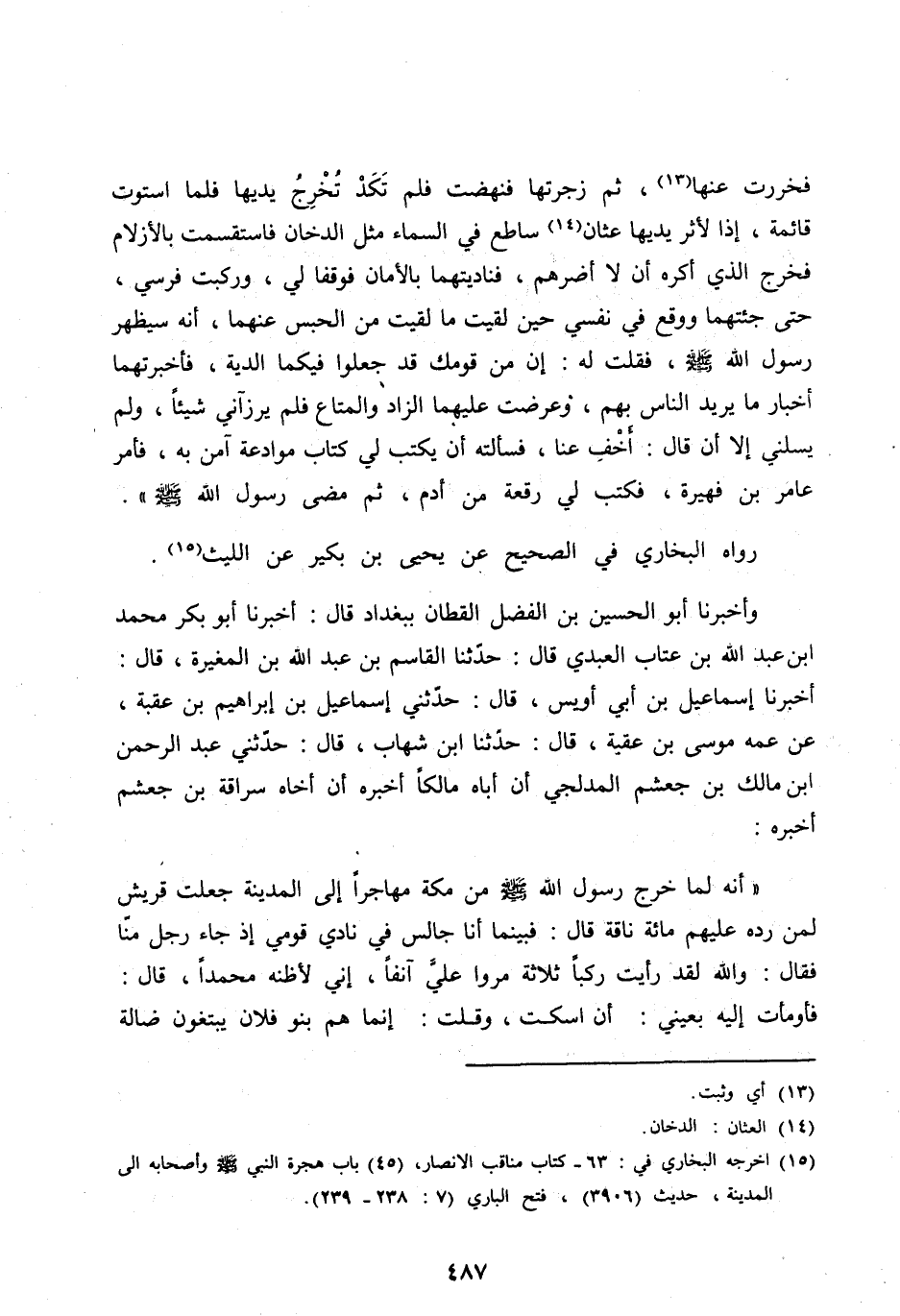 [ (15) ] أخرجه البخاري في: 63- كتاب مناقب الأنصار، (45) باب هِجْرَةِ النَّبِيِّ صَلَّى اللهُ عليه وآله وسلّم وأصحابه الى المدينة، حديث (3906) ، فتح الباري (7: 238- 239) .
