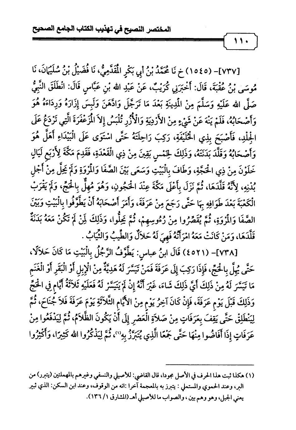 (¬1) هكذا ثبت هذا الحرف في الأصل مجودا، قال القاضي: للأصيلي والنسفي وغيرهم بالمهملتين (يتبرر) من البر، وعند الحموي والمستملي: يتبرز به بالمعجمة آخرا: انه من الوقوف، وعند ابن السكن: الذي ثبير يعني الجبل، وهو وهم بين، والصواب ما للأصيلي أهـ (المشارق 1/ 136).