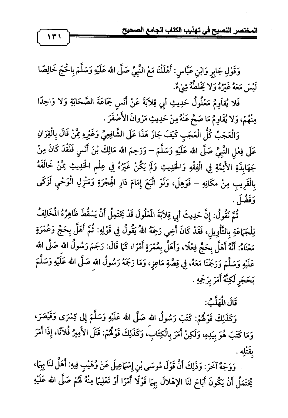 وَالْعَجَبُ كُلُّ الْعَجَبِ كَيْفَ جَازَ هَذَا عَلَى الشَّافِعِيِّ وَغَيْرِهِ مِمَّنْ قَالَ بِالْقِرَانِ عَلَى فِعْلِ النَّبِيِّ صَلَّى الله عَلَيْهِ وَسَلَّمَ - وَرَحِمَ الله مَالِكَ بْنَ أَنَسٍ فَلَقْدَ كَانَ مِنْ جَهَابِذَةِ الأَئِمَّةِ فِي الْفِقْهِ وَالْحَدِيثِ وَلَمْ يَكُنْ غَيْرُهُ فِي عِلْمِ الْحَدِيثِ مِمَّنْ خَالَفَهُ بِالْقَرِيبِ مِنْ مكَانِهِ - فَوَهِلَ, وَلَوْ اتَّبَعَ إِمَامَ دَارِ الْهِجْرَةِ وَمَنْزِلِ الْوَحْيِ لَزَكَى وَفَضُلَ.