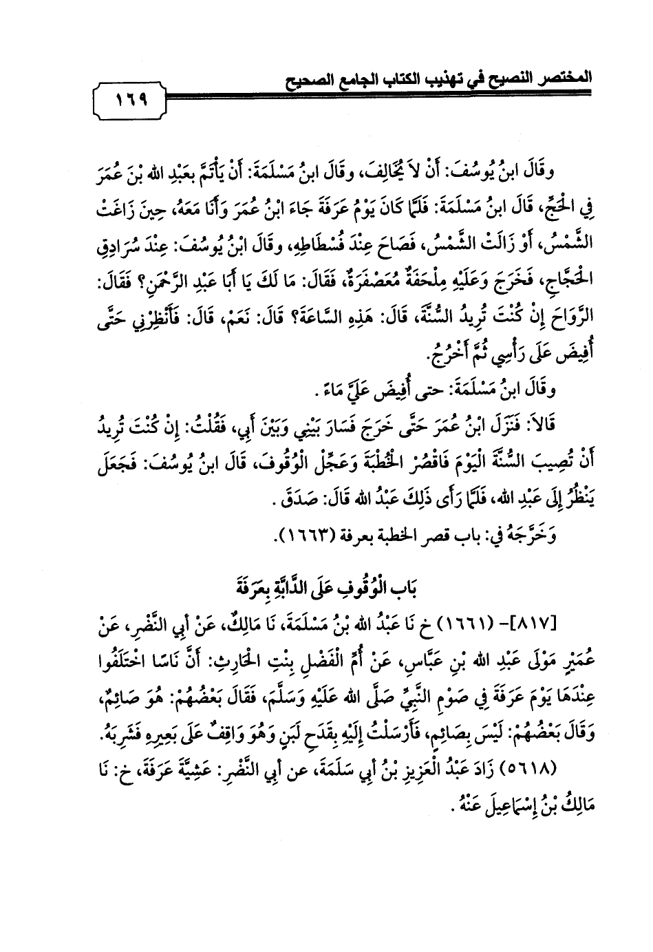 (5618) زَادَ عَبْدُ الْعَزِيزِ بْنُ أبِي سَلَمَةَ، عن أبِي النَّضْرِ: عَشِيَّةَ عَرَفَةَ, خ: نَا مَالِكُ بْنُ إِسْمَاعِيلَ عَنْهُ.