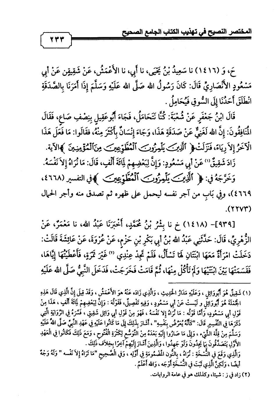 حَ, وَ (1416) نا سَعِيدُ بْنُ يَحْيَى، نا أَبِي، نا الأَعْمَشُ، عَنْ شَقِيقٍن عَنْ أبِي مَسْعُودٍ الأَنْصَارِيِّ قَالَ: كَانَ رَسُولُ الله صَلَّى الله عَلَيْهِ وَسَلَّمَ إِذَا أَمَرَنَا بِالصَّدَقَةِ انْطَلَقَ أَحَدُنَا إِلَى السُّوقِ فَيُحَامِلُ.