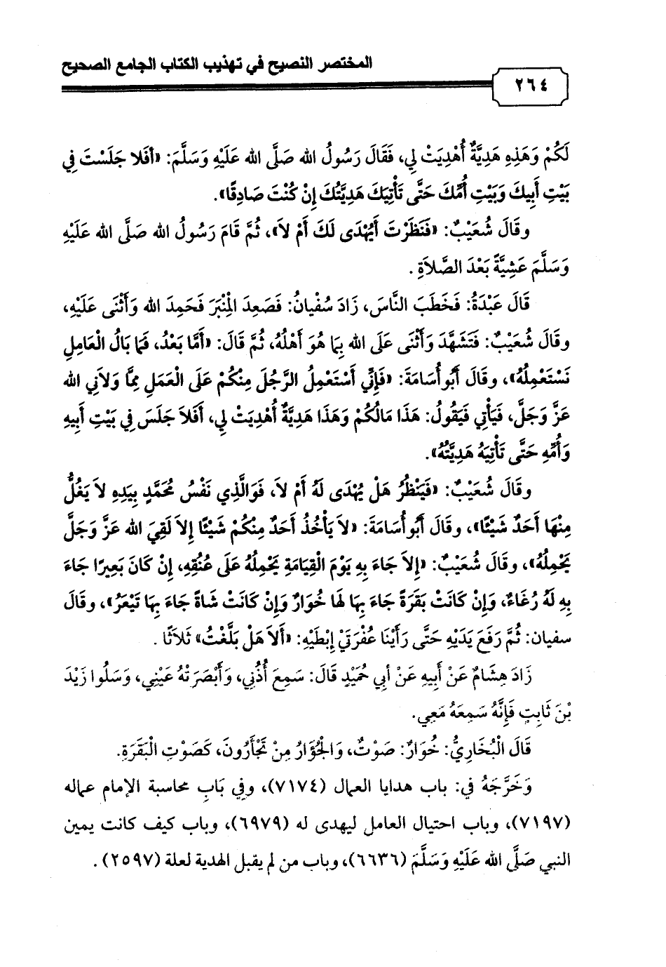 وَخَرَّجَهُ في: باب هدايا العمال (7174) , وفِي بَابِ محاسبة الإمام عماله (7197) , وباب احتيال العامل ليهدى له (6979) , وباب كيف كانت يمين النبي صَلَّى الله عَلَيْهِ وَسَلَّمَ (6636) , وباب من لم يقبل الهدية لعلة (2597).