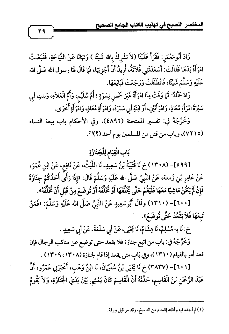 [600]- (1310) وقَالَ أَبُوسَعِيدٍ عَنْ النَّبِيِّ صَلَّى الله عَلَيْهِ وَسَلَّمَ: «فَمَنْ تَبِعَهَا فَلاَ يَقْعُدْ حَتَّى تُوضَعَ».