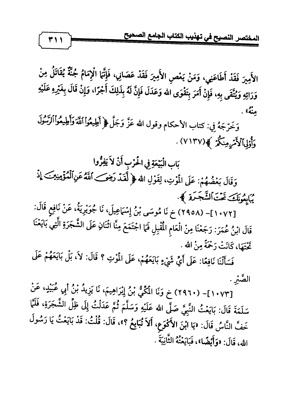 وَخَرّجَهُ فِي: كتاب الأحكام وقول الله عَزَّ وَجَلَّ {أَطِيعُوا اللَّهَ وَأَطِيعُوا الرَّسُولَ وَأُولِي الْأَمْرِ مِنْكُمْ} (7137).