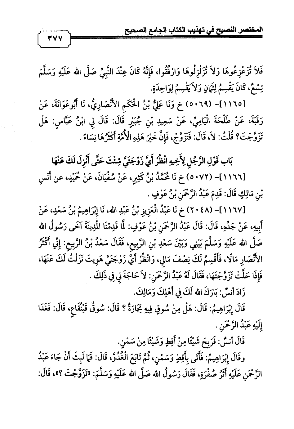 [1166]- (5072) خ نَا مُحَمَّدُ بْنُ كَثِيرٍ, عَنْ سُفْيَانَ, عَنْ حُمَيْدٍ, عن أَنَسِ بْنِ مَالِكٍ قَالَ: قَدِمَ عَبْدُ الرَّحْمَنِ بْنُ عَوْفٍ.