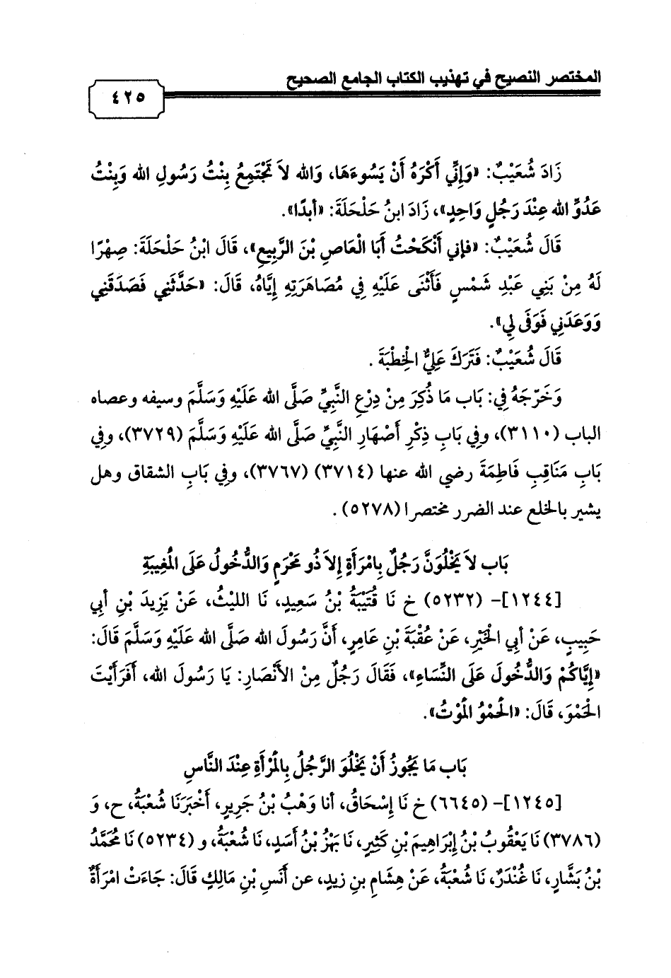 [1244]- (5232) خ نَا قُتَيْبَةُ بْنُ سَعِيدٍ, نَا الليْثُ, عَنْ يَزِيدَ بْنِ أبِي حَبِيبٍ, عَنْ أبِي الْخَيْرِ, عَنْ عُقْبَةَ بْنِ عَامِرٍ, أَنَّ رَسُولَ الله صَلَّى الله عَلَيْهِ وَسَلَّمَ قَالَ: «إِيَّاكُمْ وَالدُّخُولَ عَلَى النِّسَاءِ» , فَقَالَ رَجُلٌ مِنْ الأَنْصَارِ: يَا رَسُولَ الله, أَفَرَأَيْتَ الْحَمْوَ, قَالَ: «الْحَمْوُ الْمَوْتُ».