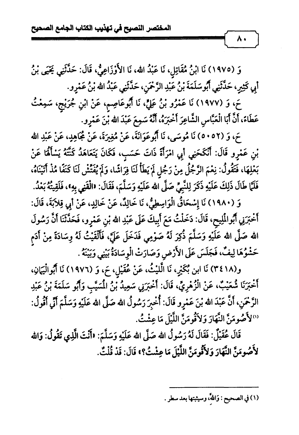 وَ (1975) نَا ابْنُ مُقَاتِلٍ، نَا عَبْدُ الله، نَا الأَوْزَاعِيُّ، قَالَ: حَدَّثَنِي يَحْيَى بْنُ أبِي كَثِيرٍ، حَدَّثَنِي أَبُوسَلَمَةَ بْنُ عَبْدِ الرَّحْمَنِ، حَدَّثَنِي عَبْدُ الله بْنُ عَمْرٍو.