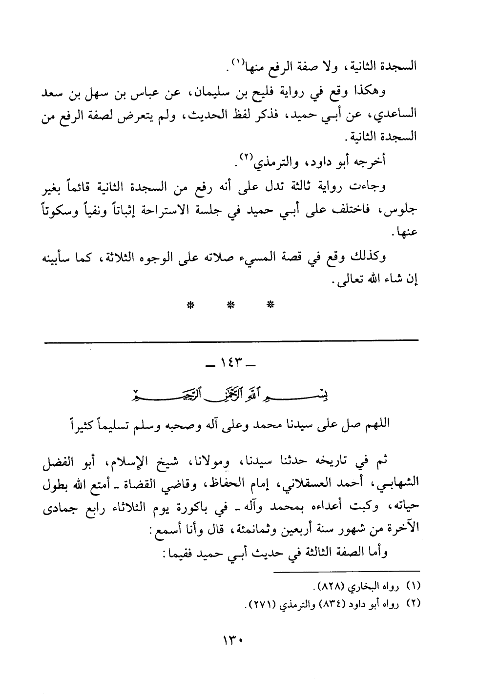 وهكذا وقع في رواية فليح بن سليمان، عن عباس بن سهل بن سعد الساعدي، عن أبي حميد، فذكر لفظ الحديث، ولم يتعرض لصفة الرفع من السجدة الثانية.