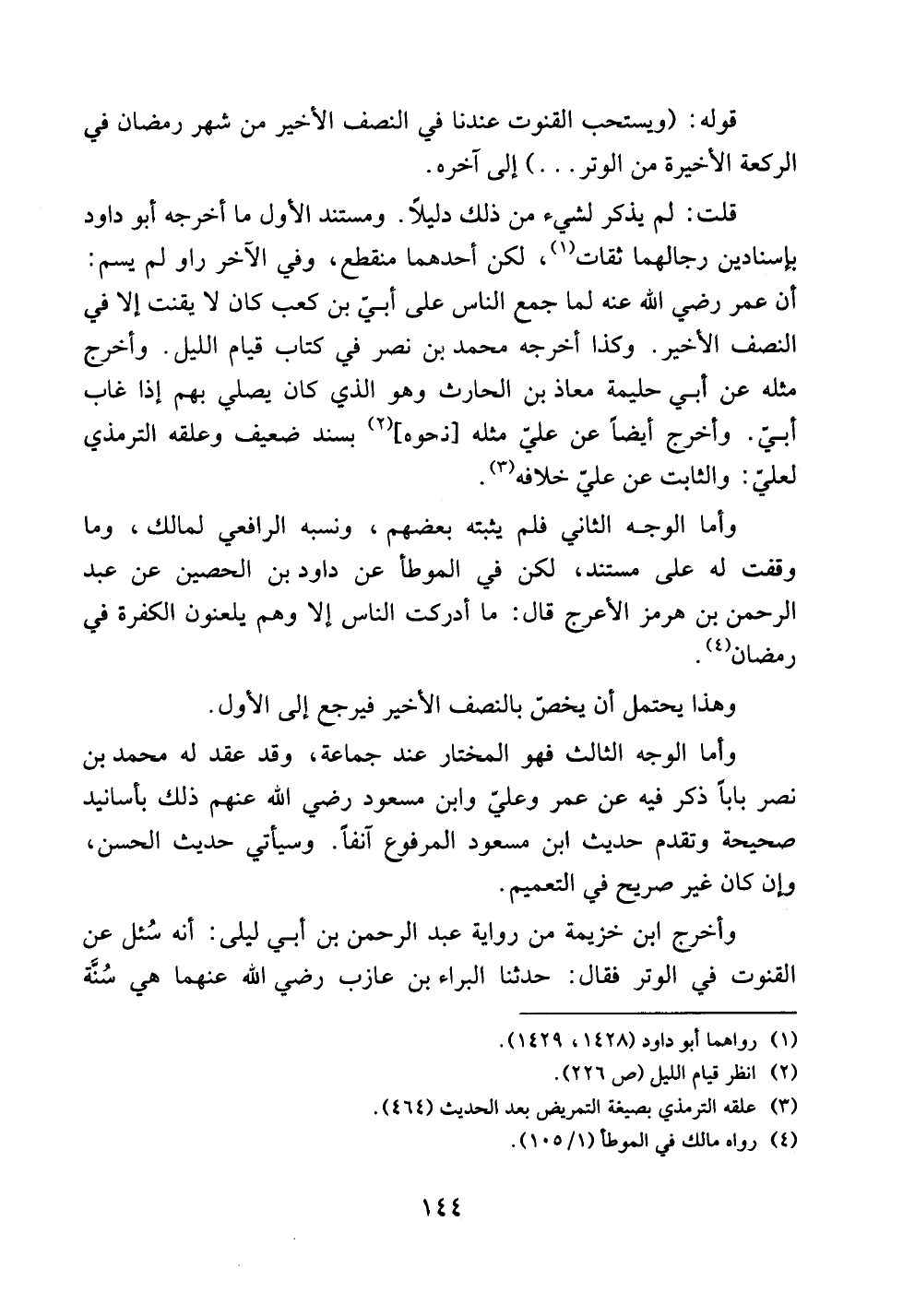 وأخرج ابن خزيمة من رواية عبد الرحمن بن أبي ليلى: أنه سئل عن القنوت في الوتر فقال: حدثنا البراء بن عازب رضي الله عنهما هي سنة