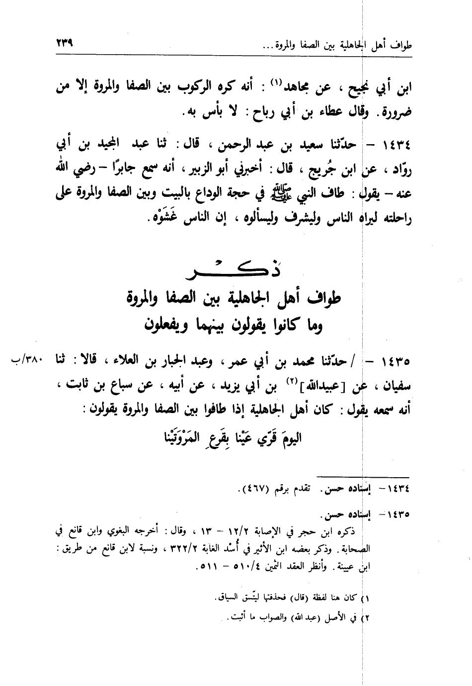 1469 - حَدَّثَنَا مُحَمَّدُ بْنُ أَبِي عُمَرَ قَالَ: ثنا سُفْيَانُ، عَنْ مِسْعَرٍ، عَنْ مُصْعَبِ بْنِ شَيْبَةَ، عَنْ عَبْدِ اللهِ بْنِ الزُّبَيْرِ رَضِيَ اللهُ عَنْهُمَا قَالَ: " كَانَتِ §الْأُمَمُ مِنْ بَنِي إِسْرَائِيلَ إِذَا جَاءُوا ذَا طُوًى خَلَعُوا نِعَالَهُمْ تَعْظِيمًا لِلْحَرَمِ "
