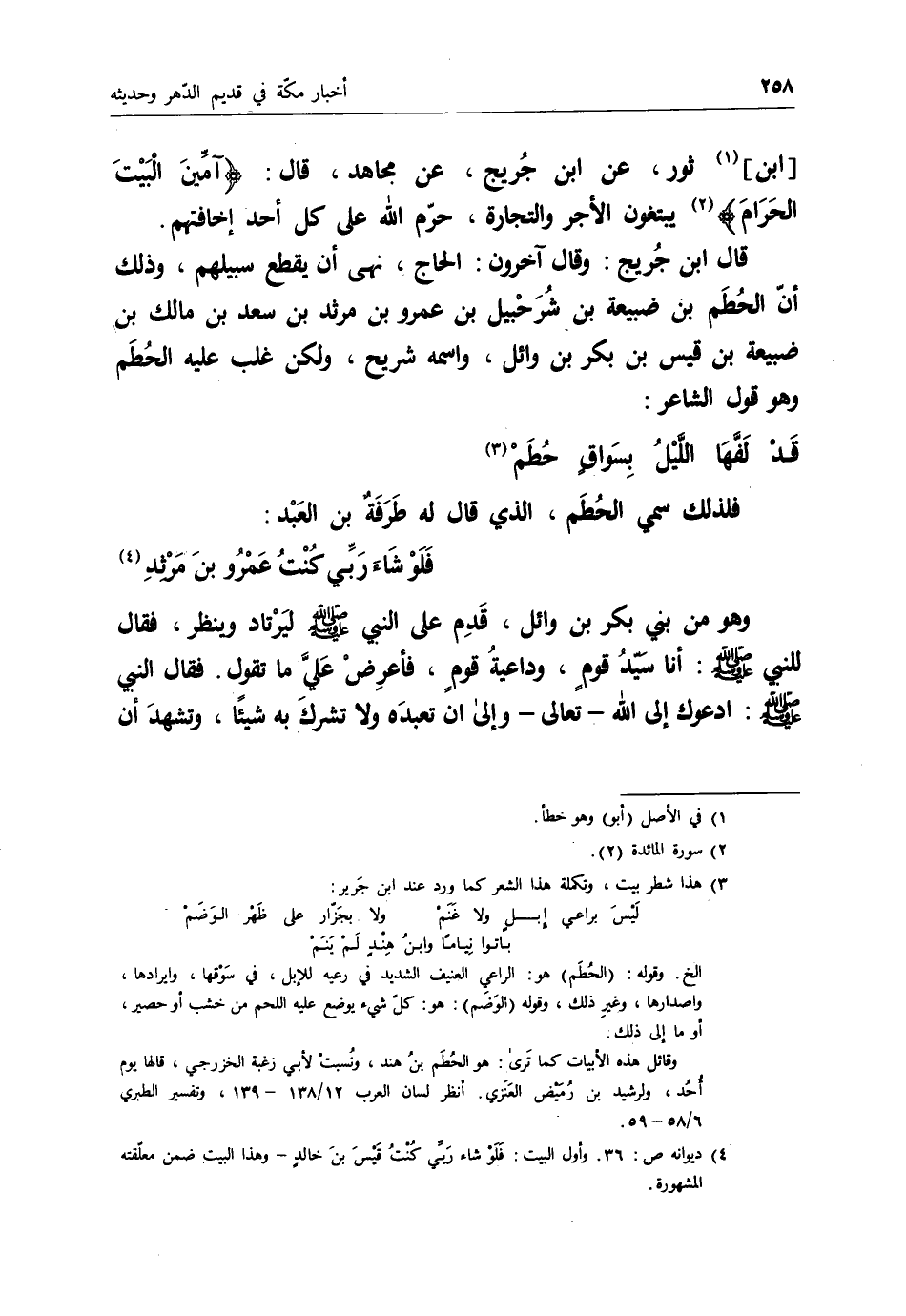 §ذِكْرُ أَنْصَابِ الْحَرَمِ كَيْفَ نَصَبَهَا إِبْرَاهِيمُ عَلَيْهِ السَّلَامُ وَالنَّبِيُّ صَلَّى اللَّهُ عَلَيْهِ وَسَلَّمَ مِنْ بَعْدِ إِبْرَاهِيمَ وَتَحْدِيدِهَا، وَمَا يُؤْمَرُ بِهِ مَنْ تَعَاهُدِهَا وَإِصْلَاحِهَا وَالْقِيَامِ عَلَيْهَا