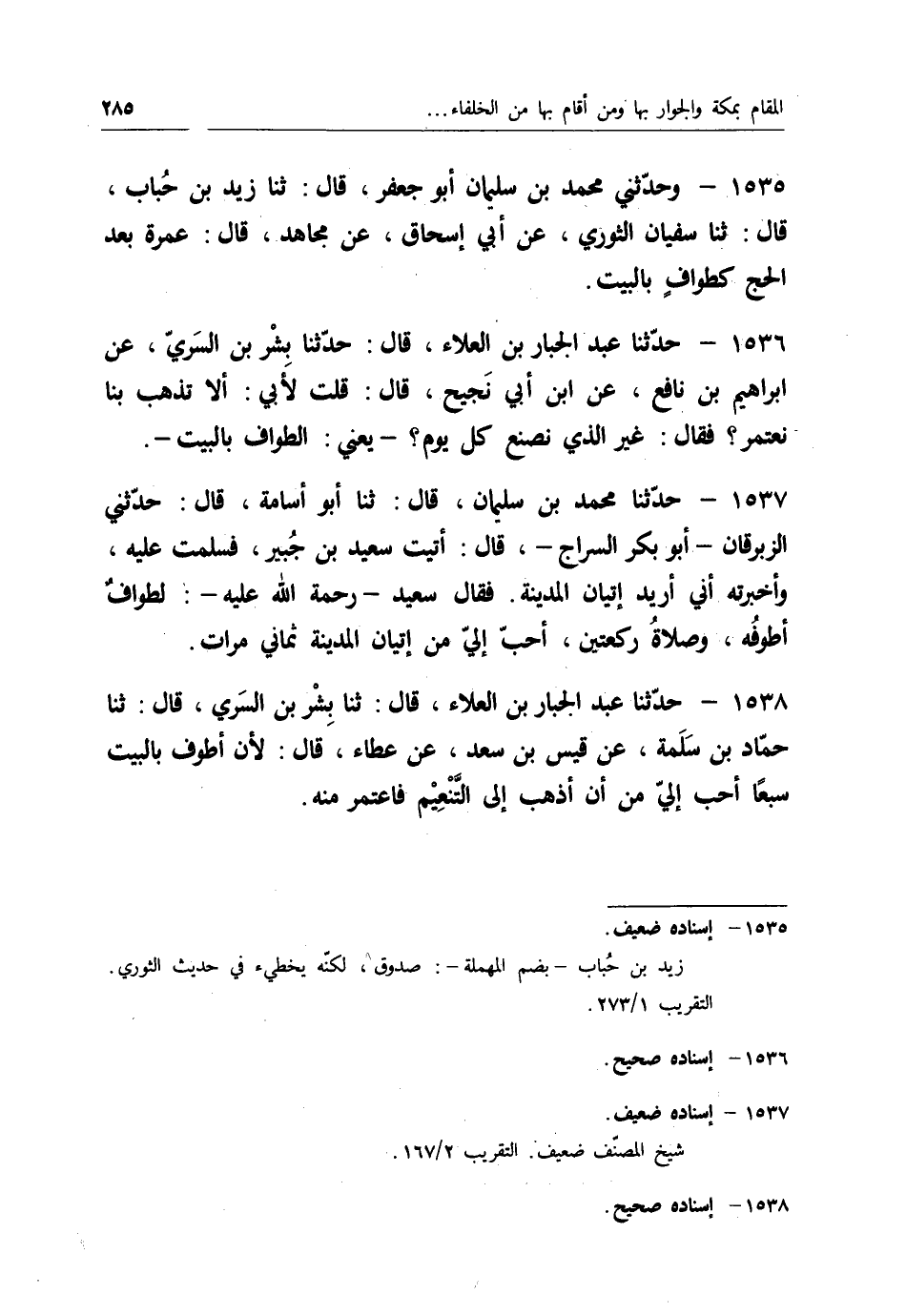 1569 - حَدَّثَنَا عَبْدُ اللهِ بْنُ مَنْصُورٍ، عَنْ عَبْدِ الرَّحِيمِ بْنِ زَيْدٍ الْعَمِّيِّ، عَنْ أَبِيهِ، عَنْ سَعِيدِ بْنِ جُبَيْرٍ قَالَ: " §مَنْ مَرِضَ يَوْمًا بِمَكَّةَ كَتَبَ اللهُ تَعَالَى لَهُ مِنَ الْعَمَلِ الصَّالِحِ الَّذِي كَانَ يَعْمَلُهُ لِسَبْعِ سِنِينَ، فَإِنْ كَانَ غَرِيبًا ضُوعِفَ ذَلِكَ "