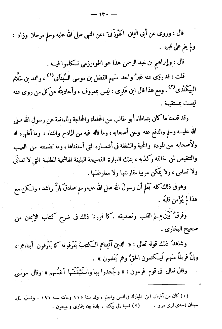 وَهُوَ فِي ذَلِكَ كُلِّهِ يَعْلَمُ أَنَّ رَسُولَ اللَّهِ صَلَّى اللَّهُ عَلَيْهِ وَسَلَّمَ صَادِقٌ بَارٌّ رَاشِدٌ، وَلَكِنْ مَعَ هَذَا لَمْ يُؤْمِنْ قَلْبُهُ.