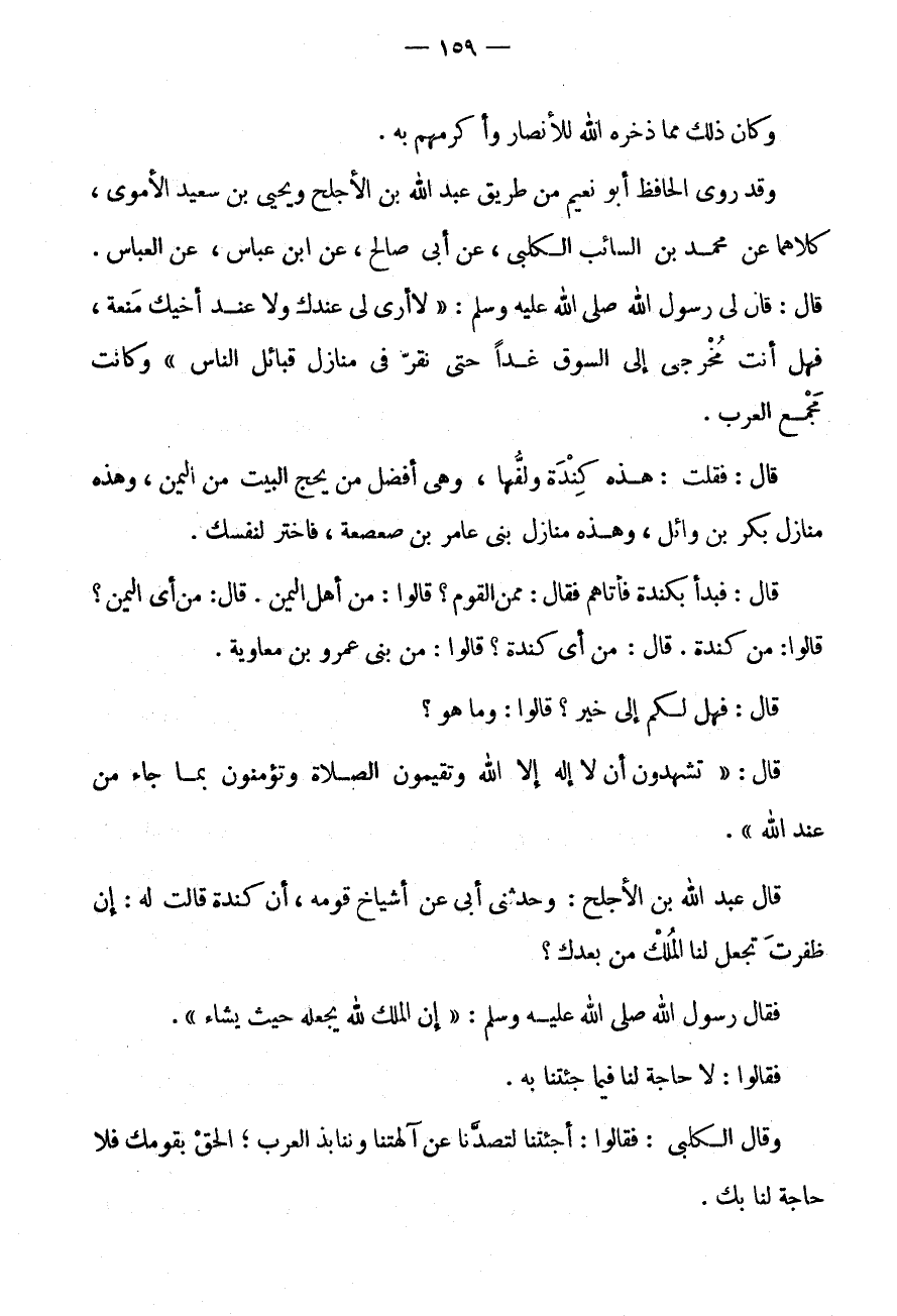 قَالَ: فَقُلْتُ: هَذِهِ كِنْدَةُ وَلَفُّهَا، وَهِيَ أَفْضَلُ مَنْ يَحُجُّ الْبَيْتَ مِنَ الْيَمَنِ، وَهَذِهِ مَنَازِلُ بَكْرِ بْنِ وَائِلٍ، وَهَذِهِ مَنَازِلُ بَنِي عَامِرِ بْنِ صَعْصَعَةَ، فَاخْتَرْ لِنَفْسِكَ.