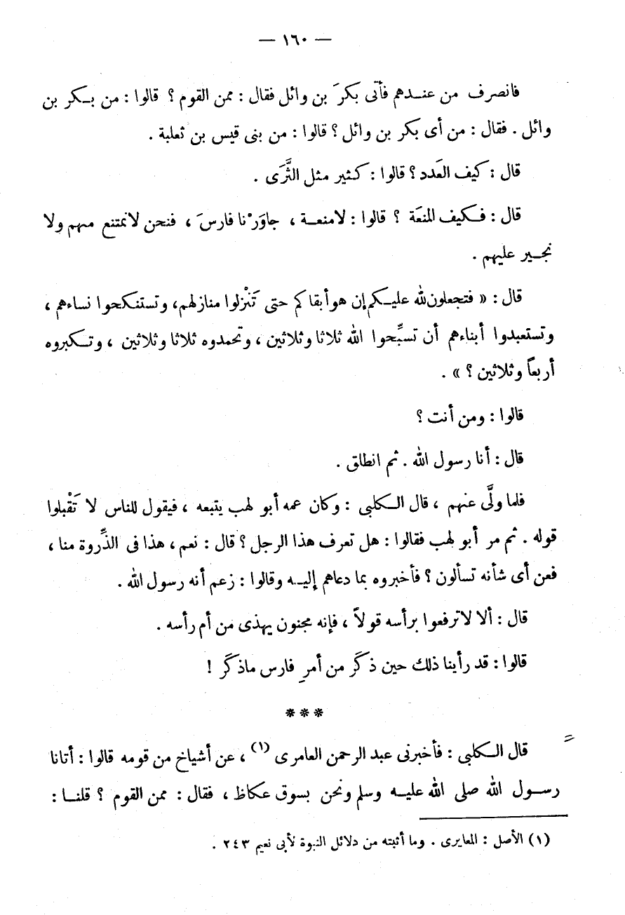 قَالُوا: قَدْ رَأَيْنَا ذَلِكَ حِينَ ذَكَرَ مِنْ أَمْرِ فَارِسَ مَا ذَكَرَ! * * * قَالَ الكلبى: فَأَخْبرنِي عَبْدُ الرَّحْمَنِ الْعَامِرِيُّ (1) ، عَنْ أَشْيَاخٍ مِنْ قَوْمِهِ قَالُوا: أَتَانَا رَسُولُ اللَّهِ صَلَّى اللَّهُ عَلَيْهِ وَسَلَّمَ وَنَحْنُ بِسُوقِ عُكَاظٍ، فَقَالَ: مِمَّنِ الْقَوْمُ؟ قُلْنَا: