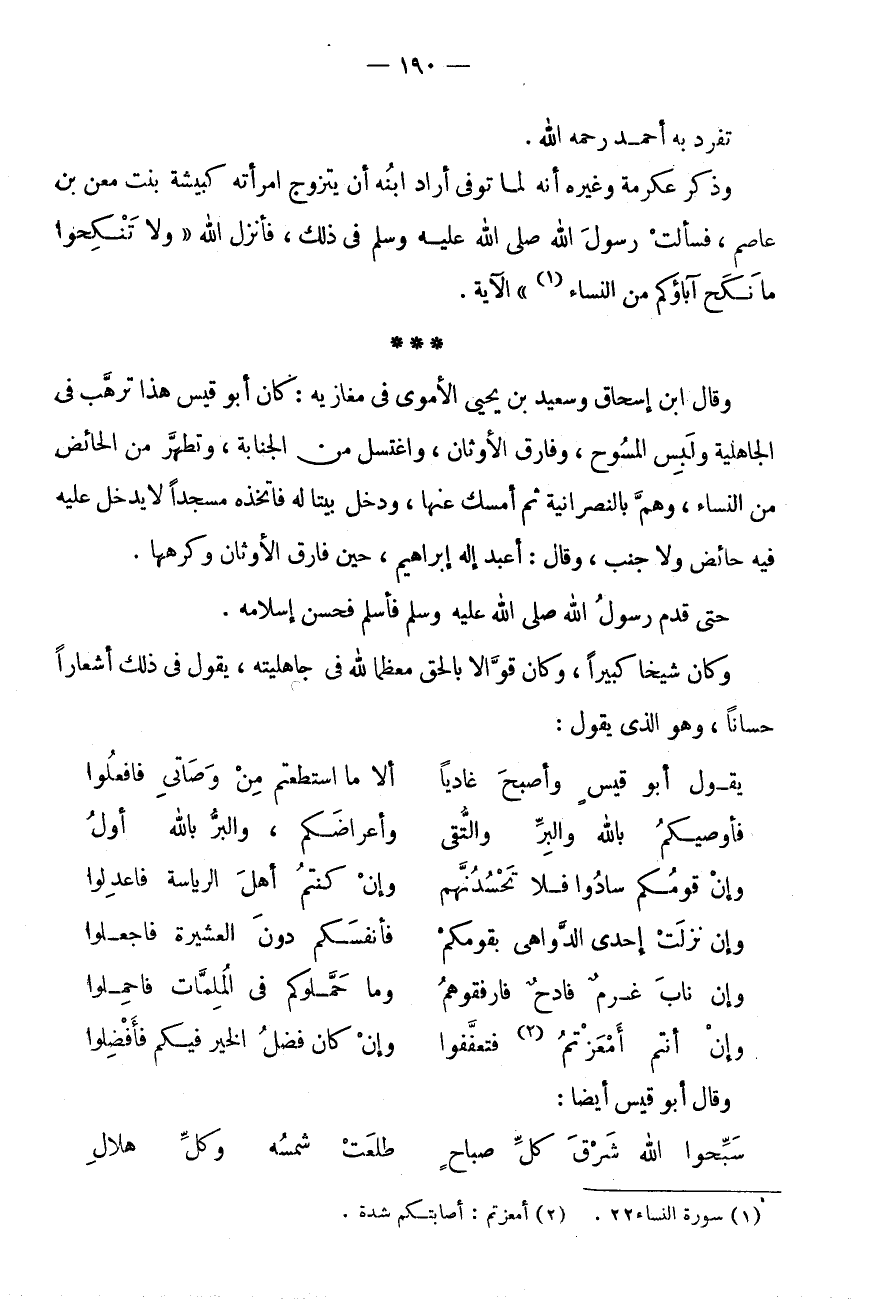 * * * وَقَالَ ابْنُ إِسْحَاقَ وَسَعِيدُ بْنُ يَحْيَى الْأُمَوِيُّ فِي مَغَازِيهِ: كَانَ أَبُو قَيْسٍ هَذَا تَرَهَّبَ فِي