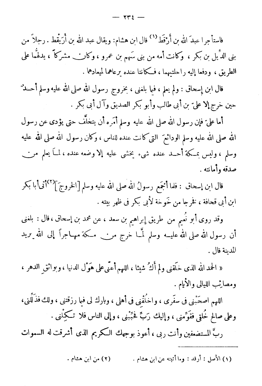 فَاسْتَأْجَرَا عَبْدَ اللَّهِ بْنَ أَرْقَطَ (1) قَالَ ابْنُ هِشَامٍ: وَيُقَالُ عَبْدُ اللَّهِ بْنُ أُرَيْقِطٍ.