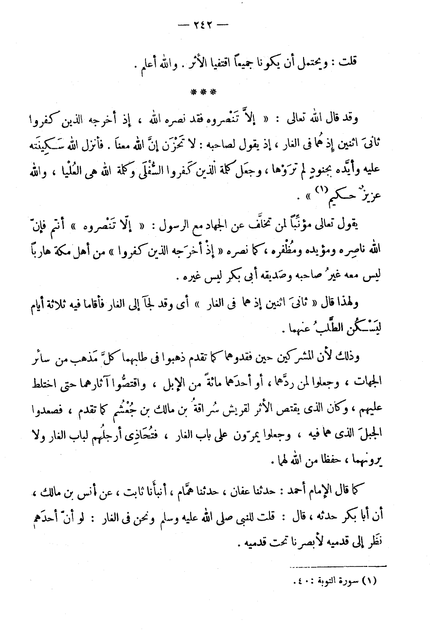 * * * وَقَدْ قَالَ اللَّهُ تَعَالَى: " إِلَّا تَنْصُرُوهُ فَقَدْ نَصَرَهُ اللَّهُ، إِذْ أَخْرَجَهُ الَّذِينَ كَفَرُوا ثَانِيَ اثْنَيْنِ إِذْ هُمَا فِي الْغَارِ، إِذْ يَقُولُ لِصَاحِبِهِ: لَا تَحْزَنْ إِنَّ اللَّهَ مَعَنَا.
