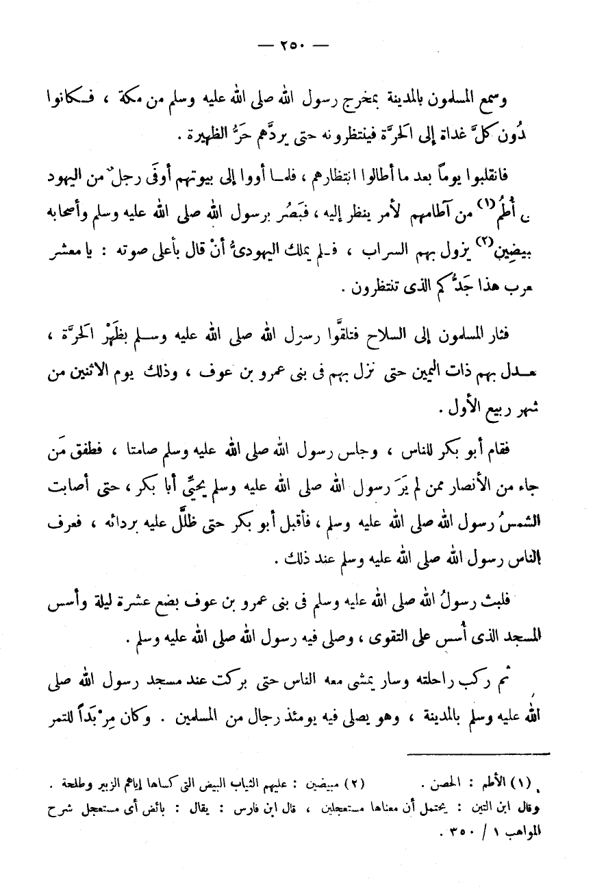 وَسَمِعَ الْمُسْلِمُونَ بِالْمَدِينَةِ بِمَخْرَجِ رَسُولِ اللَّهِ صَلَّى اللَّهُ عَلَيْهِ وَسَلَّمَ مَنْ مَكَّة، فَكَانُوا دون كُلَّ غَدَاةٍ إِلَى الْحَرَّةِ فَيَنْتَظِرُونَهُ حَتَّى يَرُدَّهُمْ حَرُّ الظَّهِيرَةِ.