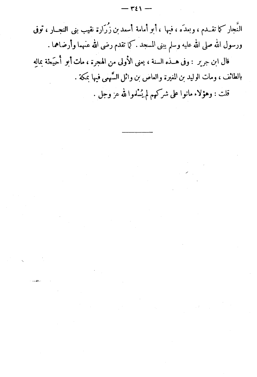 قَالَ ابْنُ جَرِيرٍ: وَفِي هَذِهِ السَّنَةِ، يَعْنِي الْأُولَى مِنَ الْهِجْرَةِ، مَاتَ أَبُو أُحَيْحَةَ بِمَالِهِ بِالطَّائِفِ، وَمَاتَ الْوَلِيدُ بْنُ الْمُغِيرَةِ والْعَاصُ بْنُ وَائِلٍ السَّهْمِيُّ فِيهَا بِمَكَّةَ.